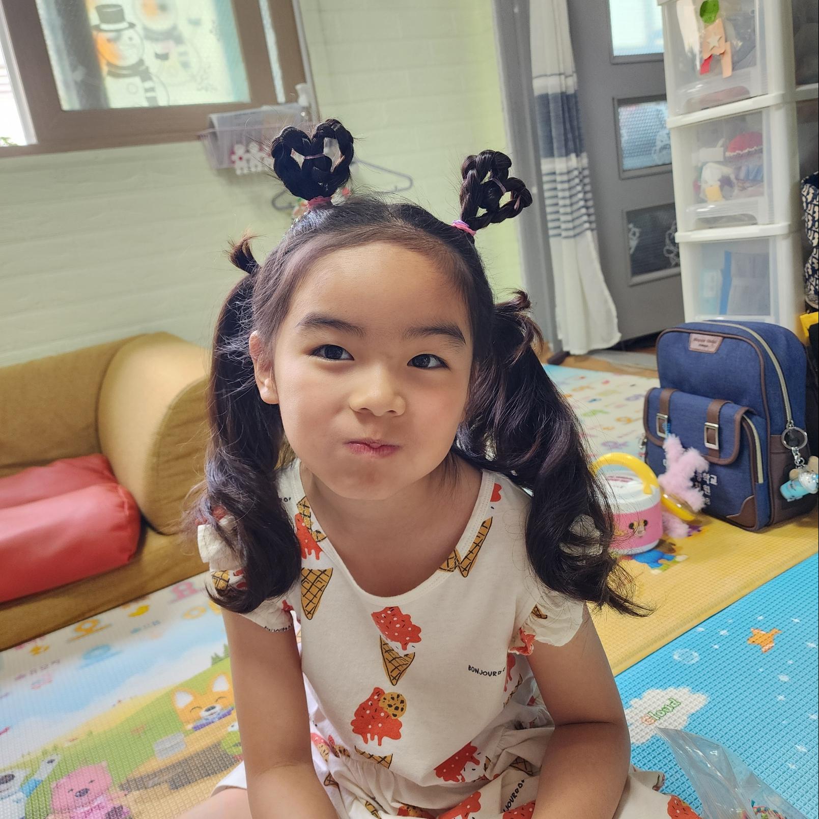 하트머리를 하고 유치원에 간 날, 친구들한테 "공주 같아~"라는 말을 많이 들었다고 하더라고요.