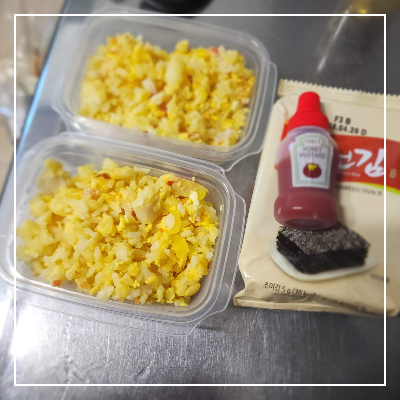 입맛에 따라 뿌려 먹을 수 있도록 케찹과 조미김도 같이 챙겨줬어요.