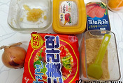 신김치, 당근, 양파, 파, 다신 생각, 다진 마늘, 후추, 설탕, 고추장